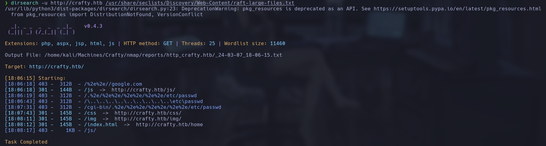 dirsearch -u http://crafty.htb -w /usr/share/seclists/Discovery/Web-Content/raft-large-files.txt