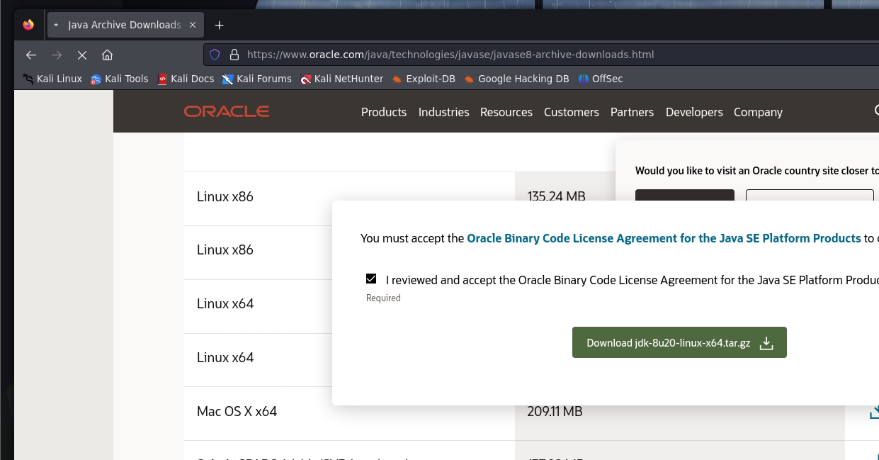 En el README.md de https://github.com/kozmer/log4j-shell-poc, podemos ver que se necesita descargar una version en específico de JAVA para el exploit. Por lo que la descargamos en https://www.oracle.com/java/technologies/javase/javase8-archive-downloads.html.