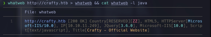 echo "10.10.11.249 crafty.htb" | sudo tee -a /etc/hosts