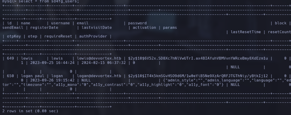 Descubrimos que las credenciales para ingresar a la base de datos son las mismas por lo que nos ponemos a curosear: