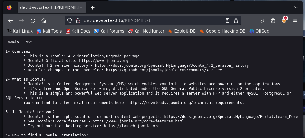 Este comando añade la dirección IP 10.10.11.242 asociada al nombre de host devvortex.htb al archivo /etc/hosts de tu sistema.