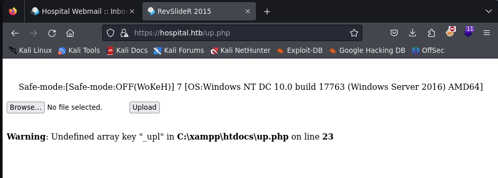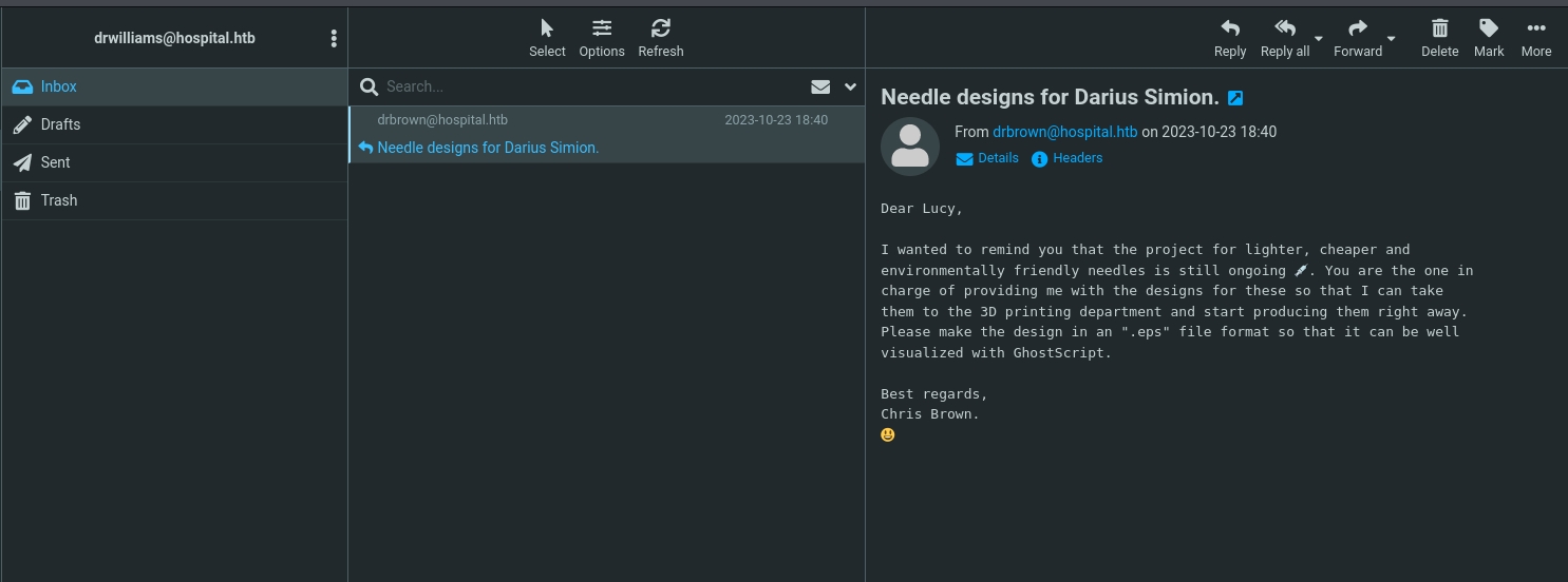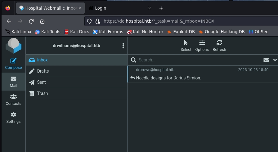 En la etapa de enumeración encontramos un webmail en dc.hospital.htb