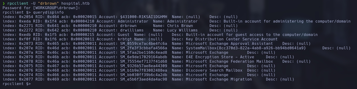 Intentamos usar las credenciales para hacer una consulta en el rpcclient