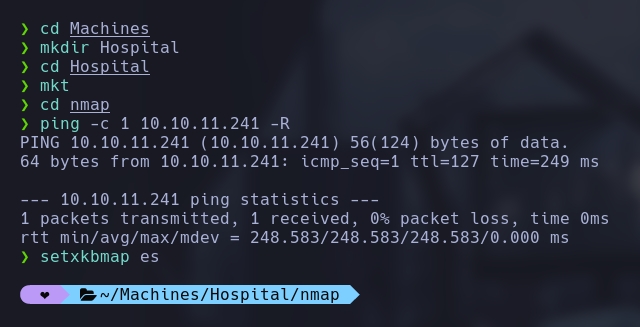 Realizamos un ping a la máquina objetivo para verificar la conectividad y obtener información sobre la ruta utilizando la opción -R