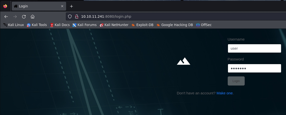 , se identificó una aplicación web en ejecución en el puerto 8080. El detalle crucial que llamó nuestra atención fue la mención de "resource login.php" en los resultados del escaneo, lo que sugiere una posible superficie de ataque a través de esta página web.