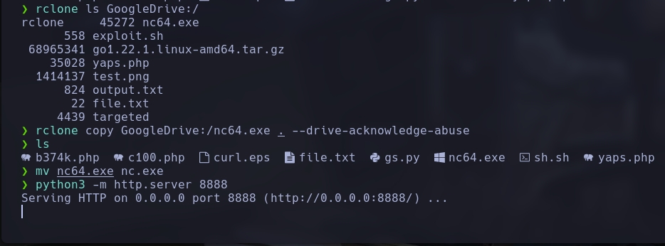 A la vez dejamos montado todo (nuestro servidor compartiendo el archivo nc.exe).