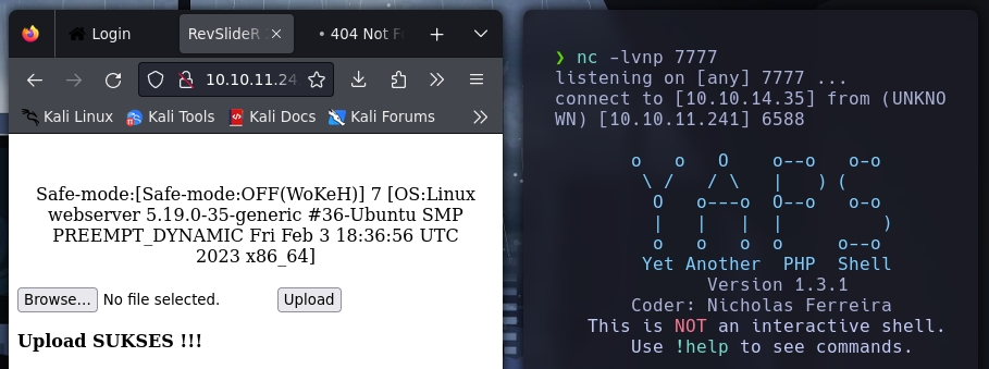 Por lo que intentaré subir una shell para luego hacer un reverse shell 👿. Asi que entre tantas escojo a yaps.php (https://github.com/tennc/webshell/tree/master/php/YAPS).