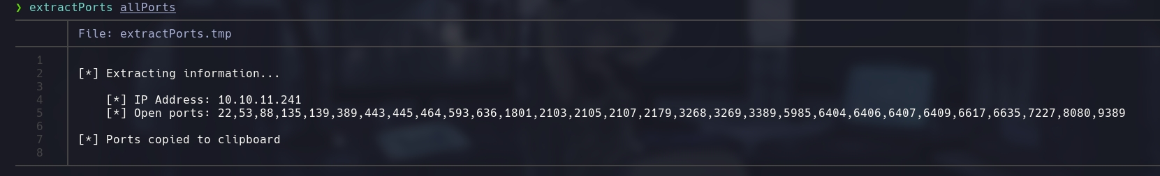 para guardar la salida en un archivo con formato Greppable para luego utilizar nuestra función extractPorts: