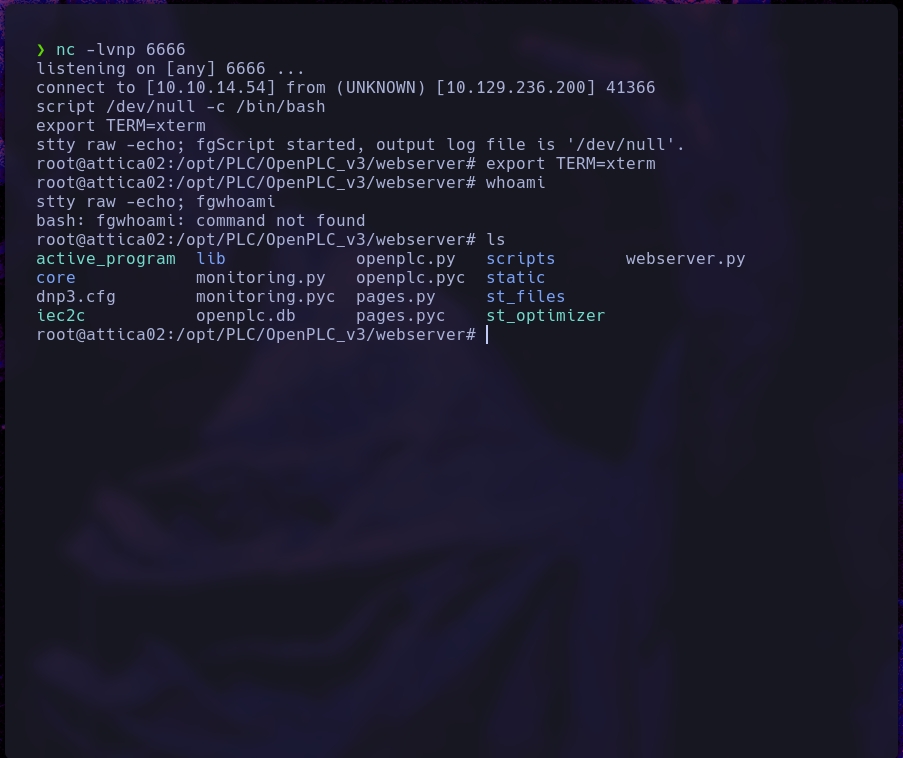 stty raw -echo; fgNos podemos encontrar con la sorpresa de que ya somos root, y también encontramos la primera flag user.txt.
